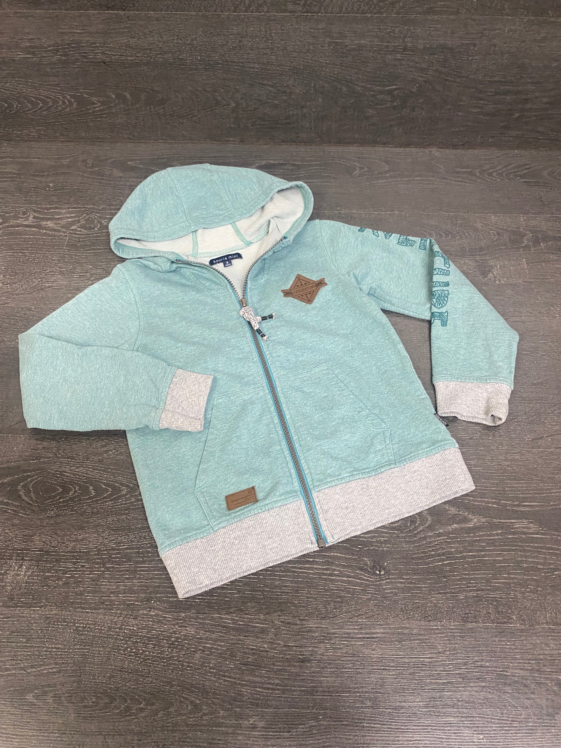 Friperie - veste capuchon - mini tache sur le poignet partira selon moi - 6 ans - souris mini